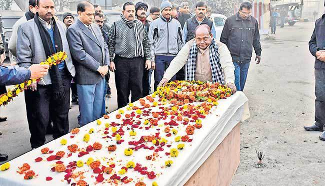 यह प्राथमिकी जलालगढ़ के सीओ राजीव रंजन ने दर्ज करायी है. घटना के बाद तीनों फरार हैं. उनकी गिरफ्तारी के लिए छापेमारी की जा रही है. इधर, शनिवार की सुबह सात बजे विश्वशरैया भवन स्थित न्यू सचिवालय में श्री पांडेय का शव लाया गया, जहां उन्हें श्रद्धांजलि दी गयी. इसके बाद शव को बक्सर जिला स्थित पैतृक गांव चिलहर ले जाया गया, जहां दाह-संस्कार किया गया. आइपीसी की धारा 302, 353, 307, 120 बी, 34 के तहत दर्ज प्राथमिकी के अुनसार, ट्रक (बी.आर.11एच- 4673) पर जो चावल लदा था, वह एफसीआइ का था. उसका कोई कागज नहीं मिला है. चावल को तस्करी कर बाहर ले जाया जा रहा था.