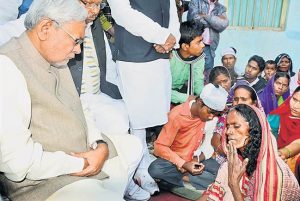 वरिष्ठ जदयू नेता नीतीश कुमार का काफिला दिन में लगभग डेढ़ बजे अजीजपुर गांव पहुंचा. वह सीधे मोहम्मद रज्जाक के घर पहुंचे. यहां पहले से आगजनी पीड़ित व मृतकों के परिजन इकट्ठा थे.