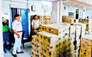 संवाददाता, पटना : फतुहा थाना पुलिस ने शनिवार की देर रात फतुहा-दनियावां एनएच 30ए पर धोवा पुल के पास 10 चक्का ट्रक से 6651 लीटर विदेशी शराब बरामद की. इस दौरान हरियाणा व चंडीगढ़ के रहने वाले दो तस्करों को गिरफ्तार किया गया. जब्त शराब की कीमत 50 लाख रुपये है. पुलिस ने शराब के अलावा ट्रक (एचपी72बी3786), दो स्मार्टफोन, एक फास्टटैग और एक जीपीएस जब्त किया है. 5900 रुपये नकद भी बरामद हुए. पुलिस जब ट्रक को थाना लेकर पहुंची और अंदर घुसाया, तो मेन गेट के दोनों पिलर उखड़ गये. एसएसपी कार्तिकेय शर्मा ने रविवार को प्रेस कॉन्फ्रेंस में बताया कि दनियावां की ओर से आ रहे 10 चक्का ट्रक को रोका गया. जब तलाशी ली गयी, तो लकड़ी के सड़े हुए डस्ट में छिपायी गयी 849 कार्टन शराब मिली. मौके पर हरियाणा के यमुना नगर निवासी विनोद कुमार और चंडीगढ़ निवासी गौरव कर लिया गया. ये ट्रक के चालक और खलासी हैं. पूछताछ में पता चला कि उन्हें चंडीगढ़ से ट्रक मिला था. झारखंड होते हुए पटना के ट्रांसपोर्ट नगर में माल पहुंचाना था. दनियावां में पुलिस ने उन्हें पकड़ लिया.