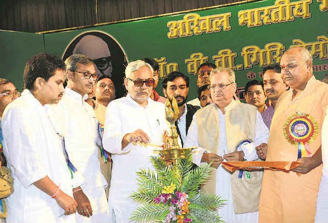 पटना :पूर्व राष्ट्रपति वीवी गिरि की 121वीं जयंती समारोह पर मुख्यमंत्री नीतीश कुमार ने पीएम नरेंद्र मोदी पर जम कर पलटवार किया. एसके मेमोरियल सभागार में आयोजित समारोह में आये नीतीश कुमार ने बिहार की लगातार उपेक्षा को लेकर उन्होंने कहा कि अब तो जुमला बाबू बख्श दें. समारोह में उपस्थित लोगों से 30 अगस्त को बिहार स्वाभिमान रैली में आने की अपील की. साथ ही लोगों को झांसे में नहीं आने का आग्रह किया. समारोह का आयोजन अखिल भारतीय गोस्वामी जागरण मंच व डॉ वीवी गिरि मेमोरियल वेलफेयर संस्थान ने किया.