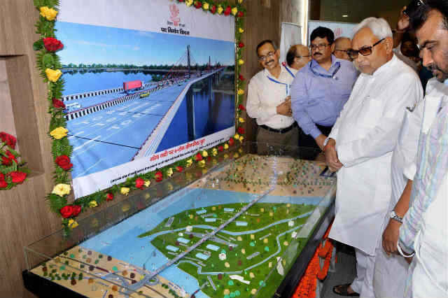 नीतीश द्वारा पथ निर्माण विभाग की 8834.80 करोड रुपये के उदघाटन, कार्यारंभ और शिलान्यास की गयी योजनाओं में 5000 करोड रुपये का गंगा नदी पर पटना जिला के कच्ची दरगाह से वैशाली जिला के बिदुपुर के बीच 9.76 किलोमीटर लंबे छह लेन वाला पुल भी शामिल हैं जिसके लिए प्रदेश सरकार अपनी ओर से 2000 करोड रुपये तथा एशियन डेवलपमेंट बैंक 3000 करोड रुपये रिण के तौर पर उपलब्ध कराएगा. वर्तमान में उत्तर बिहार और दक्षिण बिहार की लाईफ लाईन माने जाने वाले पटना और वैशाली जिला मुख्यालय हाजीपुर को जोडने वाले महात्मा गांधी सेतु के सामानांतर बनने वाला यह पुल संभवत: देश में सबसे लंबा पुल होगा.