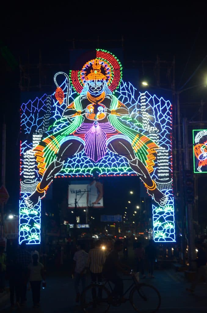 रंगीन लाइटों से सजा शहर