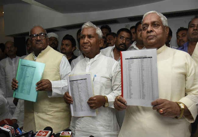 वाल्मीकिनगर , रामनगर, नरकटियागंज, बेतिया, गोविंदगंज, रिगा, बननाहा(एससी), हरलाखी, बेनीपट्टी, अररिया, बहादुरगंज, किशनगंज, अमौर, कसबा, . पूर्णियां, कदवा, प्राणपुर, मनिहारी, कोरहा (एससी), भोरे(एससी), मांझी, हाजीपुर, रोसडा(एससी), बछवाडा, . बेगुसराय, कहलगांव, भागलपुर, बरबीघा, बांकीपुर, कुम्हरार, विक्रम, तरारी, बक्सर, मोहनिया(एससी), चेनारी (एससी), कुटुम्बा (एससी), औरंगाबाद, गया टाउन, . वजीरगंज, गोविंदपुर, . सिकंदरा (एससी).