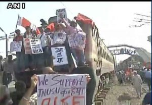 कन्हैया कुमार की जमानत की मांग करते हुए बड़ी संख्या में छात्र आज सुबह दरभंगा स्टेशन पर जुट गये.छात्रों ने बिहार संपर्क क्रांति को रोकाऔर उसके इंजन पर चढ़ गये. छात्रों ने मधुबनी स्टेशन पर भी पैसेंजर ट्रेन को रोककर कन्हैया की रिहाई की मांग की. खगड़िया स्टेशन पर जानकी एक्सप्रेस को भी रोकागया.