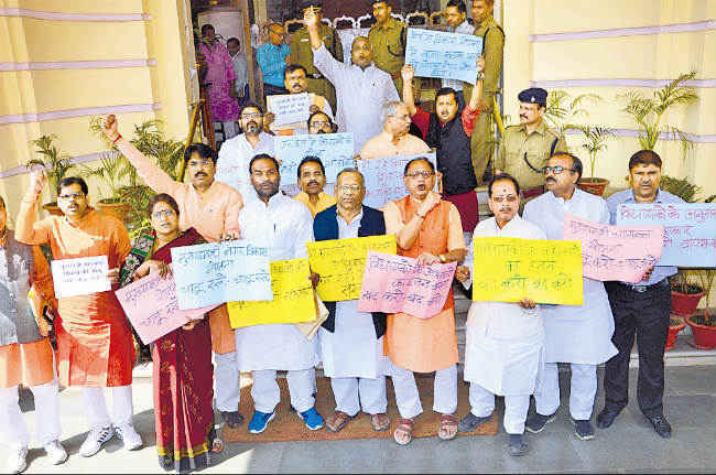 विस में हंगामा, वेल में आये एनडीए सदस्य