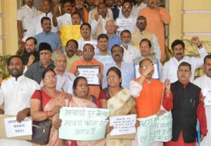 विरोध प्रदर्शन के दौरान भाजपा नेताअों ने हाथ में तख्ती लिये सरकार के खिलाफ जमकर नारे लगाए. विपक्षी नेताओं के हाथ में कागज की तख्तियों पर लिखा था अपराधी मस्त सरकार पस्त, अपराधी हुए बेलगाम सरकार फरमा रही आराम. भाजपा नेताओं का कहना है जबसे महागंठबंधन की सरकार बनी है अपराध के ग्राफ में तेजी से बढ़ोतरी हुई है, लेकिन सरकार इस रोकने में विफल दिख रही है.