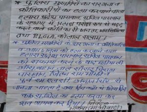 पटना / गया : हाल में गया के डुमरिया में हुए लोजपा नेता सुदेश पासवान की हत्या की जिम्मेवारी भाकपा माओवादी संगठन ने ली है. इस संबंध में माओवादियों ने इमामगंज के गुरिया बाजार में एक पोस्टर भी चिपकाया है. पोस्टर में माओवादियों ने लिखा है कि पुलिस मुखबिरों का सरगना और क्रांतिकारियों की हत्या करवाने वाला हत्यारा सुदेश पासवान और सुनील पासवान के सफाया में प्रत्यक्ष व परोक्ष रूप से मदद करने वाली जनता, जनमिशिया और पीएलजीए को लाल सलाम. उसके आगे दूसरी कड़ी में माओवादियों ने लिखा है कि हत्यारा सुदेश पासवान और सुनील पासवान का सफाया होने के बाद घड़ियाली आंसू बहाने वाले सांसद चिराग पासवान, जीतन राम मांझी और पूर्व एमएलसी अनुज सिंह कहां थे जिस दिन कॉमरेड सुशील की हत्या कर शव को गायब कर दिया गया था.