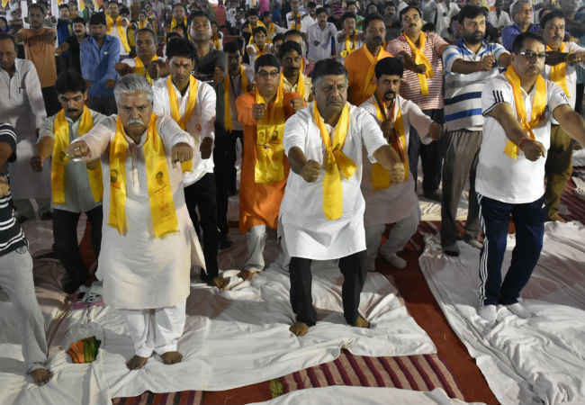 दरअसल, बिहार सरकार ने विश्व योग दिवस पर न तो कोई कार्यक्रम आयोजित किया और न ही बिहार सरकार का कोई मंत्री या विधायक योग के किसी कार्यक्रम में शामिल होता दिखा. राजधानी में हुए इस योग कार्यक्रम के लिए पतंजलि योग समिति के सदस्यों ने खुद जाकर नीतीश सरकार के अधिकतर मंत्रियों से लेकर मुख्यमंत्री, उपमुख्यमंत्री और जदयू-राजद के नेताओं को निमंत्रित भी किया था. लेकिन भाजपा नेताओं को छोड़ कर बिहार भर में हुए योग के किसी कार्यक्रम में सरकारकीओर से काेईमंत्रीया नेता शामिल नहीं हुए.
