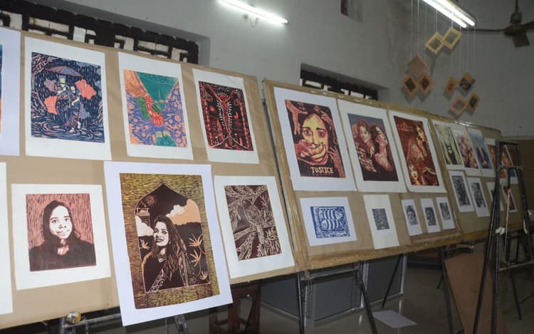 कॉलेज के छापा कला विभाग की ओर से वूड आर्ट के जरिये नारी सशक्तीकरण के विभिन्न आयामों को प्रदर्शित किया गया है. रिफ्लेक्स ऑफ वीमन हुड थीम पर आधारित आर्ट वर्क में महिलाओं के साहस, प्रेम और समर्पण की कहानियों को उकेरा गया है. इसके साथ ही प्रदर्शनी में पायनरी आर्ट और डिवाइन आर्ट को भी शामिल किया गया है. विभाग की छात्रा अर्चना और शौर्य ने बताया कि वुड कट के माध्यम से विभिन्न आर्ट पीस प्रदर्शनी में लोगों को देखने के लिए मिलेगी.