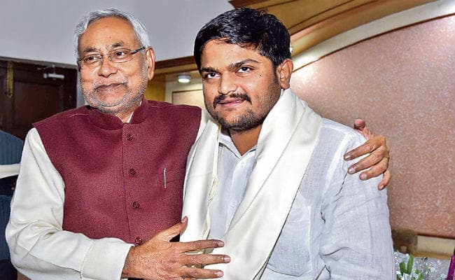 पटना : गुजरात पाटीदार आंदोलन के नेता व पटेल नव निर्माण सेना के राष्ट्रीय अध्यक्ष हार्दिक पटेल ने केंद्र सरकार से मंडल कमीशन की सिफारिशों को ईमानदारी से लागू करने की मांग की है. मंगलवार को पटना पहुंचे हार्दिक पटेल ने मुख्यमंत्री नीतीश कुमार से मुलाकात की और उन्हें 28 जनवरी को गुजरात के सौराष्ट्र में होने वाले किसान महासम्मेलन में शामिल होने का न्योता दिया.जदयू के राष्ट्रीय महासचिव केसी त्यागी ने बताया कि नीतीश कुमार ने इस महासम्मेलन में शामिल होने की अपनी सहमति दे दी है. त्यागी के अनुसार नीतीश ने हार्दिक से कहा कि किसी गैरराजनीतिक आंदोलन की आयु लंबी नहीं होती है. इसलिए आप जदयू के साथ आइये, हमलोग मिल कर काम करेंगे.