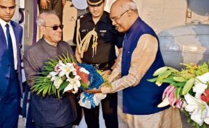 भागलपुर : राष्ट्रपति के आने को लेकर भागलपुर का बेसब्री से इंतजार रविवार को खत्म हो गया. शाम पांच बज कर दो मिनट पर नेशनल थर्मल पावर कॉरपोरेशन, कहलगांव कैंपस में बने हेलीपैड पर राष्ट्रपति प्रणब मुखर्जी का हेलीकॉप्टर उतरा. सांसद शैलेश कुमार उर्फ बुलो मंडल और कहलगांव के विधायक सदानंद सिंह ने गुलदस्ता भेंट कर उनका स्वागत किया.राष्ट्रपति के हेलीकॉप्टर के साथ दो अतिरक्ति हेलीकॉप्टर की भी लैंडिंग हुई. राष्ट्रपति के साथ मंत्री राजीव प्रताप रुढ़ी, गोड्डा सांसद निशि कांत दुबे, भाजपा के राष्ट्रीय प्रवक्ता शाहनवाज हुसैन भी आये.