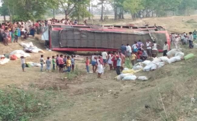 बिहार : मधुबनी में तालाब में बस गिरी, 36 के मरने की खबर, 10 शव बरामद