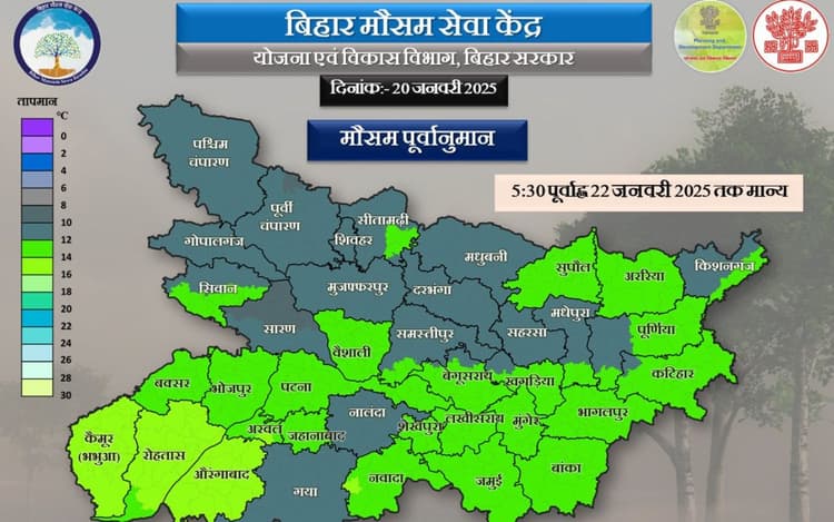 बिहार मौसम सेवा केंद्र के अनुसार, राज्य के दक्षिण-पश्चिम एवं दक्षिण-मध्य भागों में मध्यम से तेज गति की हवा चलने की स्थिति जारी रहने की संभावना है. अगले 24 घंटे में राज्य के उत्तरी भाग पश्चिम चंपारण, सीतामढ़ी, मधुबनी, सुपौल, अररिया, किशनगंज, मुजफ्फरपुर, वैशाली, सहरसा, दरभंगा, भागलपुर, खगड़िया, कटिहार और मुंगेर जिलों में सुबह और शाम की समय घना कोहरा छाए रहने की संभावना है. मौसम विभाग का कहना है कि मंगलवार को तापमान बढ़ने से ठंड में गिरावट आएगी, लेकिन पछिया हवा के कारण सुबह और शाम में कनकनी बनी रहेगी.