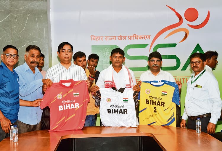 पाटलिपुत्र स्पोर्ट्स कॉम्प्लेक्स में 20 मार्च से होने वाले सेपक टाकरा वर्ल्ड कप में हिस्सा लेने वाली भारतीय टीम जर्सी का मंगलवार को खेल मंत्री सुरेंद्र मेहता ने अनावरण किया़ इस मौक पर बिहार राज्य खेल प्राधिकरण के निदेशक रविंद्र नाथ चौधरी, सेपक टाकरा फेडरेशन ऑफ इंडिया के अध्यक्ष योगेंद्र सिंह दहिया, बिहार सेपक टाकरा एसोसिएशन के सचिव विजय कुमार शर्मा, कोषाध्यक्ष करूणेश कुमार और भारतीय सेपक टाकरा टीम के खिलाड़ी मौजूद रहे. इस मौके पर खेल मंत्री ने कहा कि सेपक टाकरा वर्ल्ड कप की मेजबानी बिहार के लिए बहुत गर्व की बात है. इस वर्ल्ड कप के आयोजन से बिहार का मान अंतरराष्ट्रीय स्तर पर बढ़ेगा. योगेंद्र सिंह दहिया ने बताया कि चार वर्ष पर होने वाले वर्ल्ड कप का भारत में पहली बार आयोजन हो रहा है़ यह बिहार के लिए बड़ी बात है कि सेपक टाकरा वर्ल्ड कप की मेजबानी कर रहा है.एक देश तीन इवेंट ले सकता है भाग