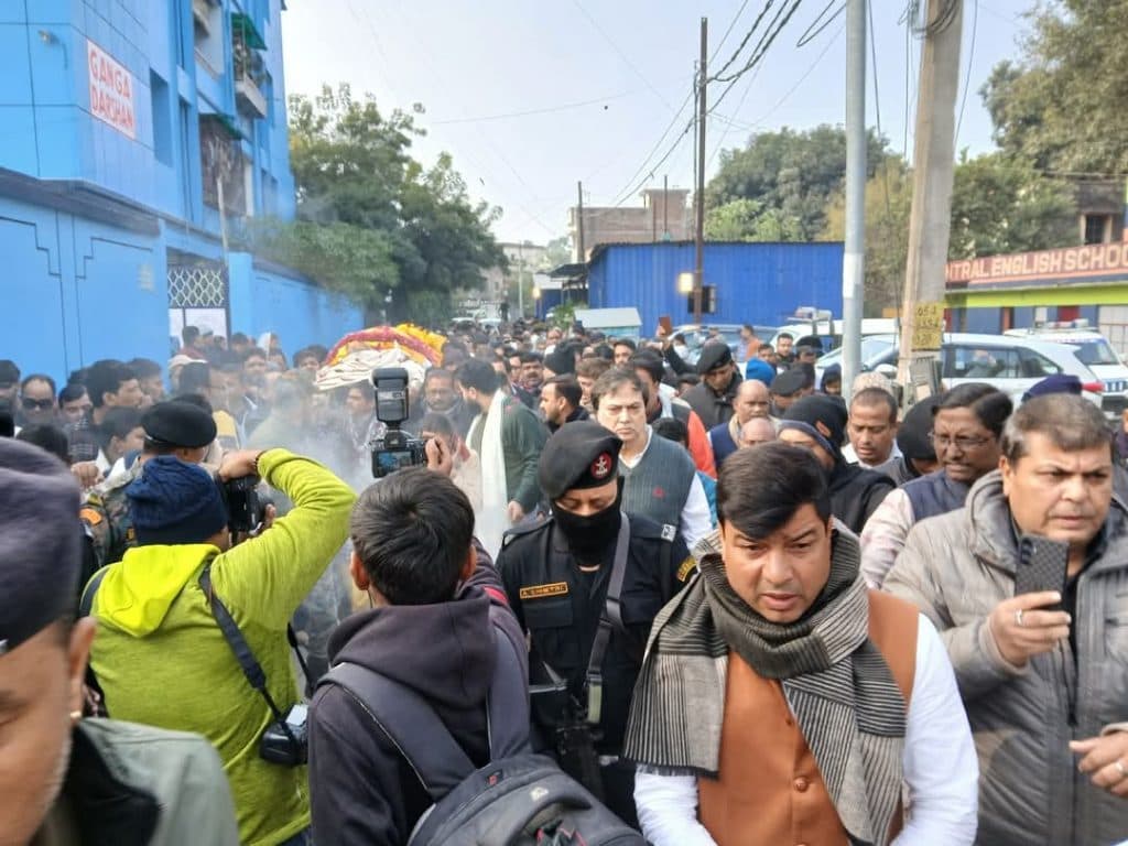 Kishore Kunal Last Rites: पटना. आचार्य किशोर कुणाल अपनी अंतिम यात्रा पर निकल चुके हैं. शव यात्रा के दौरान उनसे जुड़े लोगों में भावनाओं का सैलाब उमड़ पड़ा है. ठीक सुबह नौ बजे कुर्जी स्थित उनके आवास से शव यात्रा शुरू हुई. आचार्य के पार्थिव शरीर को कुर्जी से महावीर मंदिर ले जाया गया. किशोर कुणाल की अंतिम यात्रा गौशाला रोड, सदाकत आश्रम, कुर्जी से शुरू होकर राजीव नगर, अटल पथ, पटना जंक्शन स्थित महावीर मंदिर (सुबह 10:00 बजे), गांधी मैदान, मरीन ड्राइव, गायघाट, गांधी सेतु होते हुए कोनहारा घाट हाजीपुर पहुंचेगी. वहां करीब 1: 00 बजे आचार्य किशोर कुणाल का अंतिम संस्कार किया जाएगा. शवयात्रा के दौरान भी उनके व्यक्तित्व और सामाजिक योगदानों को लोग याद करते रहे. शव यात्रा में महावीर मंदिर न्यास से संचालित होनेवाले अस्पतालों के कई चिकित्सा और कर्मी के अलावा पटना विवि के शिक्षक व छात्र भी शामिल हुए.