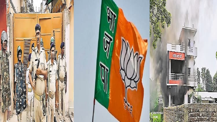 भाजपा कार्यालय में भी आगजनी व तोड़फोड़