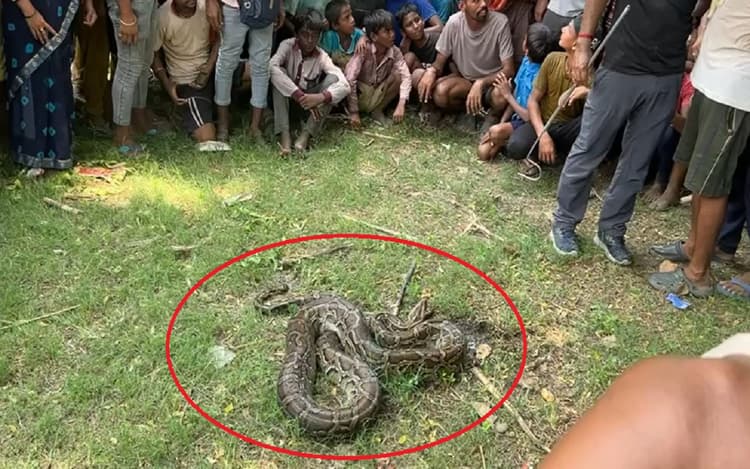 VIDEO: पटना में गांव वालों ने 15 फुट के विशालकाय अजगर सांप की लगा दी परेड, देखिए फिर क्या हुआ...