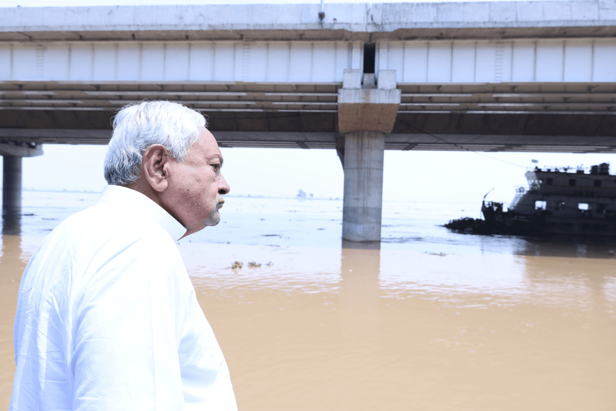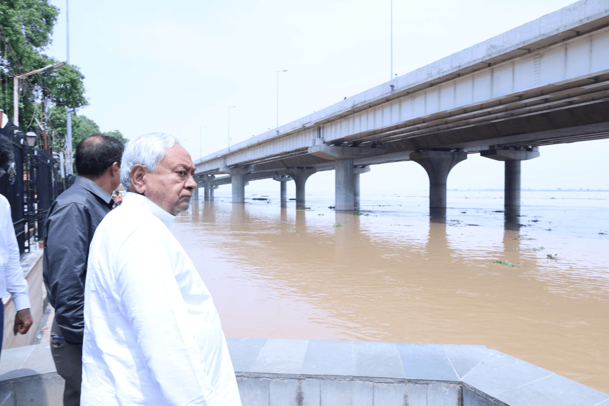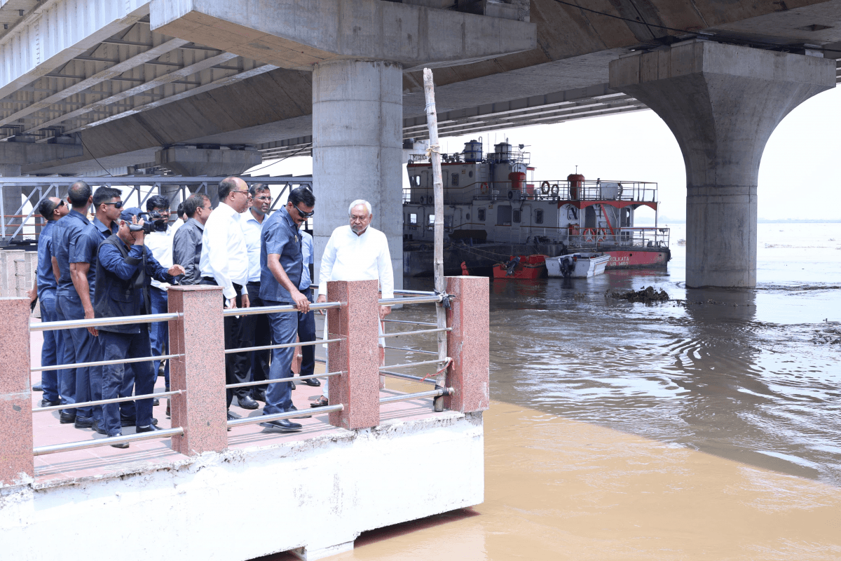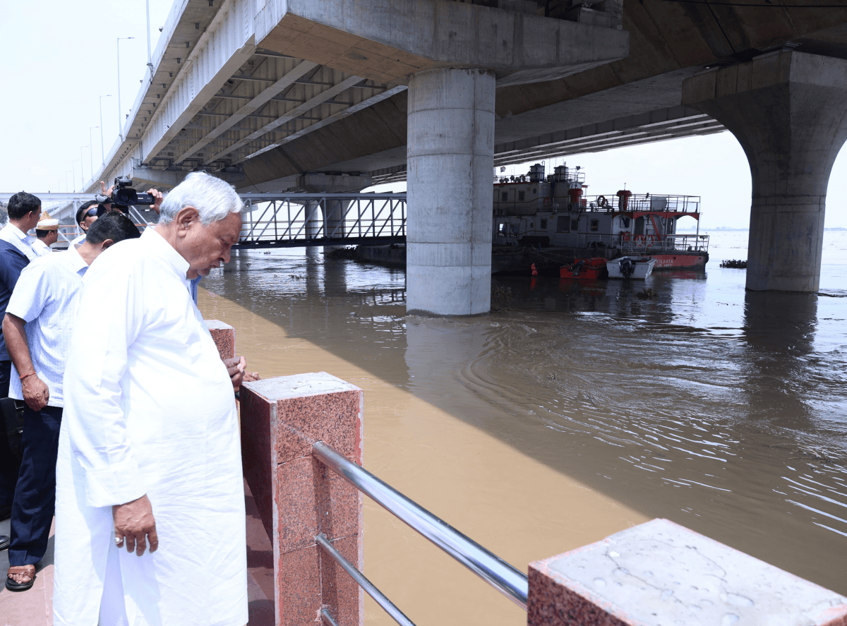 गंगा नदी का निरीक्षण करते हुए सीएम नीतीश