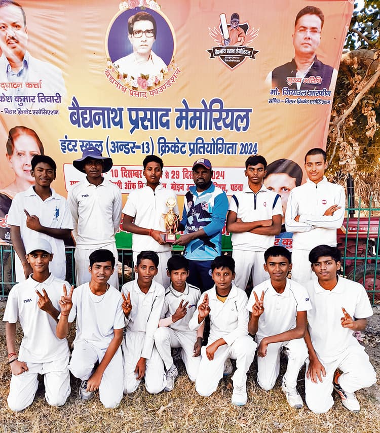 पटना. क्रिकेट एकेडमी ऑफ बिहार के ग्राउंड पर चल रहे बैद्यनाथ प्रसाद मेमोरियल अंडर-13 इंटर स्कूल क्रिकेट टूर्नामेंट में गुरुवार को खेले गये मैच में क्रिकेट एकेडमी ऑफ पटना ने करुणा क्रिकेट एकेडमी को सात विकेट से हराया. करुणा क्रिकेट एकेडमी ने टॉस जीता और पहले बैटिंग करते हुए 23.2 ओवर में सभी विकेट खोकर 130 रन बनाये. जवाब में सागर कुमार के 93 रन की पारी की बदौलत 12.5 ओवर में तीन विकेट पर 134 रन बना कर मैच अपने नाम कर लिया. विजेता टीम के सागर कुमार को प्लेयर ऑफ द मैच का पुरस्कार दिया गया.