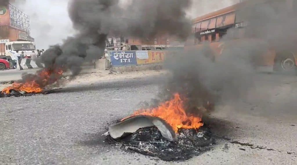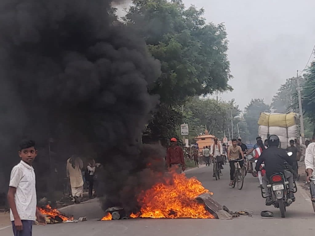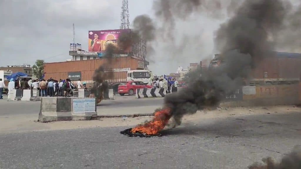 पटना के बाढ़ थाना क्षेत्र के मलाही गांव स्थित एनएच पर भारत बंद का नजारा देखने को मिला. भारत बंद कराने सड़क पर उतरे आंदोलनकारियों ने नेशनल हाइवे पर टायर जलाकर सड़क को जाम किया और अपना विरोध जताया. इस दौरान दोनों तरफ वाहन खड़े रहे.