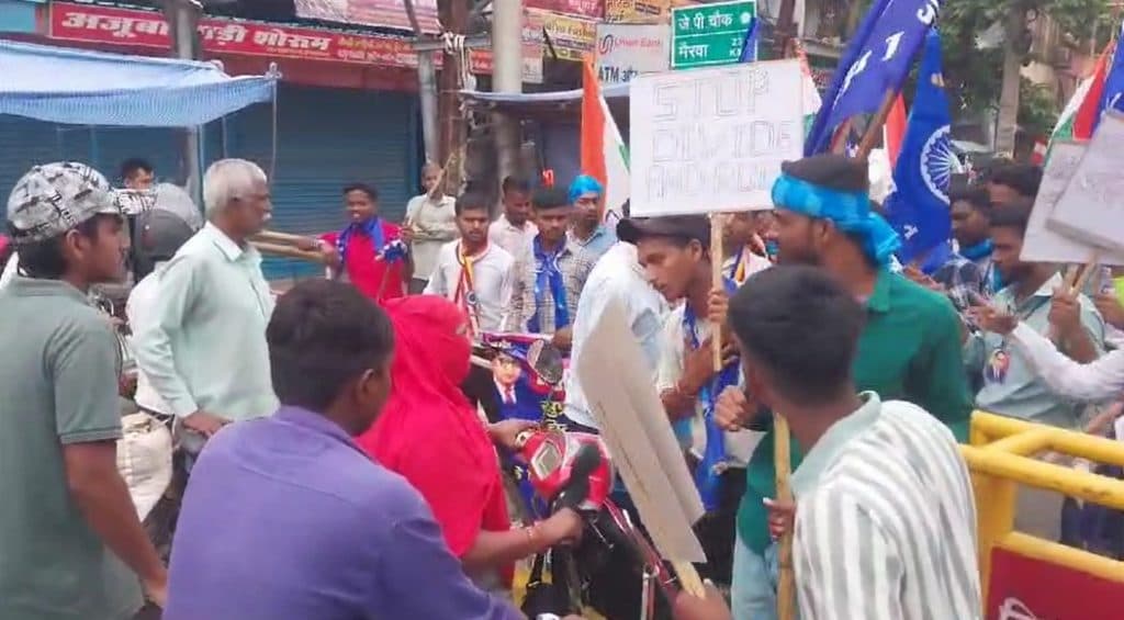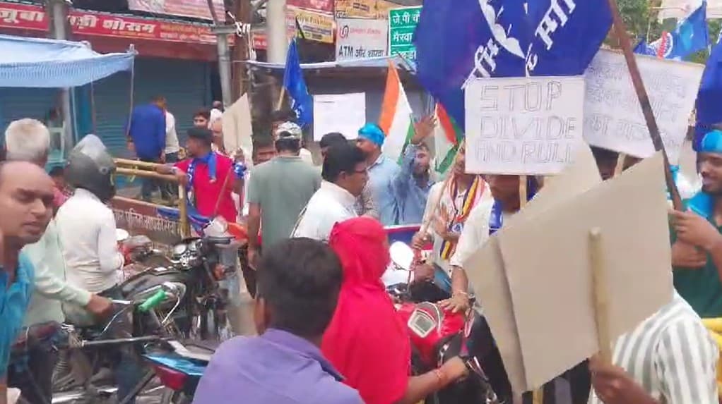 दरभंगा जंक्शन पर भीम आर्मी समेत कई पार्टियां भारत बंद को सफल बनाने उतरीं. दरभंगा नई दिल्ली बिहार संपर्क क्रांति सुपरफास्ट ट्रेन का चक्का जाम करके अपना विरोध जताया. प्रदर्शनकारियों ने केंद्र सरकार के खिलाफ नारेबाजी की.