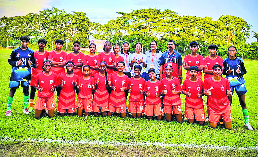 पटना़ असम के जोरहट स्थित बापूजी स्टेडियम में खेली जा रही सब जूनियर गर्ल्स नेशनल फुटबॉल चैंपियनशिप टियर-1 में शनिवार को बिहार की टीम ने शानदार प्रदर्शन करते हुए मध्यप्रदेश को 7-0 से पराजित किया. बिहार की जीत की नायिका बनीं टीम की कप्तान रिंकी कुमारी चौहान, जिन्होंने अकेले छह गोल दागे. रिंकी चौहान ने खेल के 22वें, 24वें, 29वें, 44वें, 49वें और 90 1वें मिनट में गोल किया. पिंकी कुमारी ने एक गोल दागा. बिहार की टीम ने हाफ टाइम तक 4-0 की बढ़त बना ली थी. इससे पहले भी बिहार ने अपने पिछले मैच में पंजाब को 20-0 से मात दी थी. लगातार दूसरी जीत से टीम का आत्मविश्वास चरम पर है और टूर्नामेंट में खिताब की प्रबल दावेदार मानी जा रही है. ग्रुप डी में खेल रही बिहार टीम का अगला मुकाबला 25 अगस्त को कर्नाटक से है.
