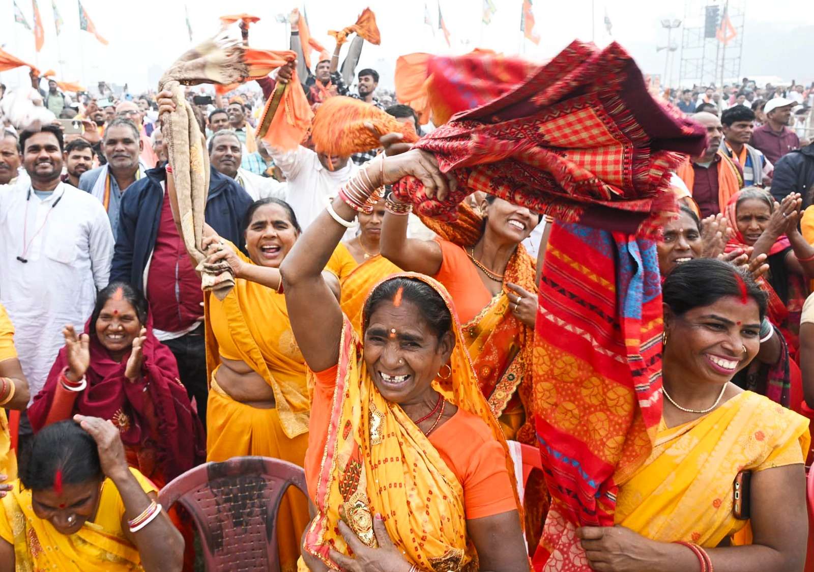 Nitish Kumar Patna Shapath Grahan Samaroh Photo Live: मोदी के गमछा लहराते ही महिलाओं ने लहराया शॉल...