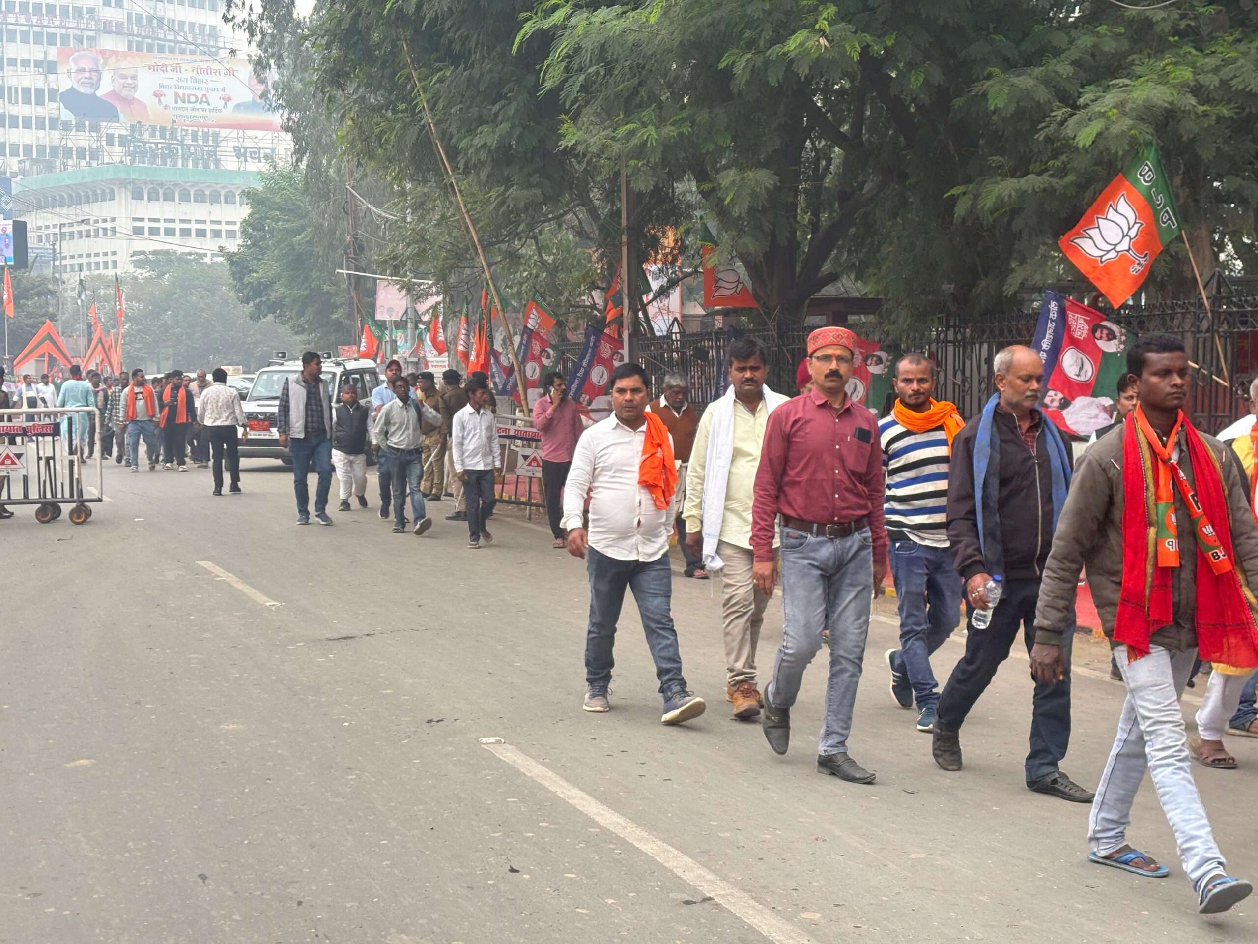 Nitish Kumar Patna Shapath Grahan Samaroh Live: गांधी मैदान की ओर जाते लोग.