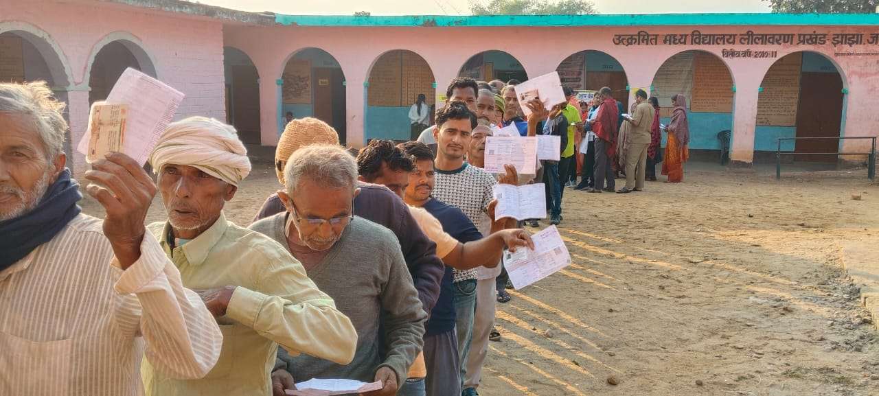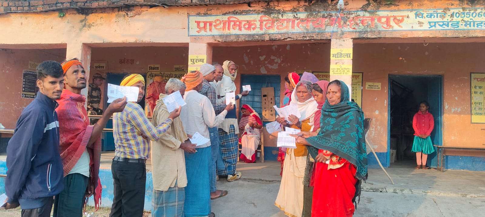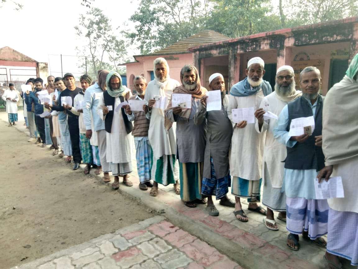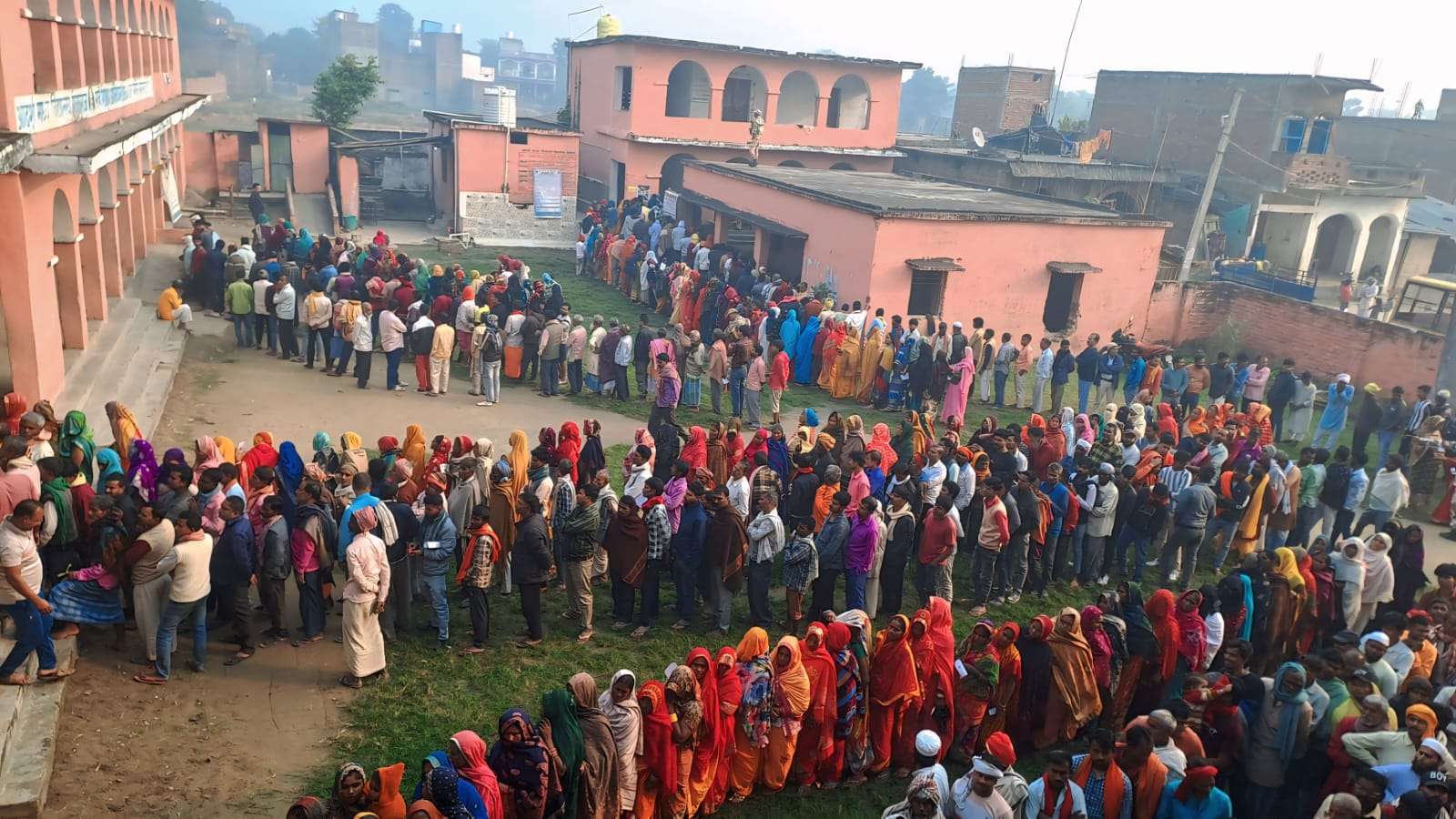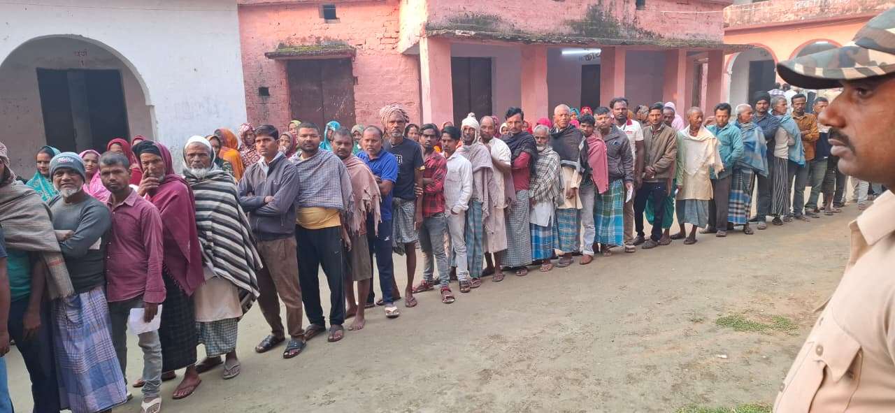 मेजरगंज में सुबह से ही मतदाताओं के उत्सुकता, लगी लंबी कतारें.