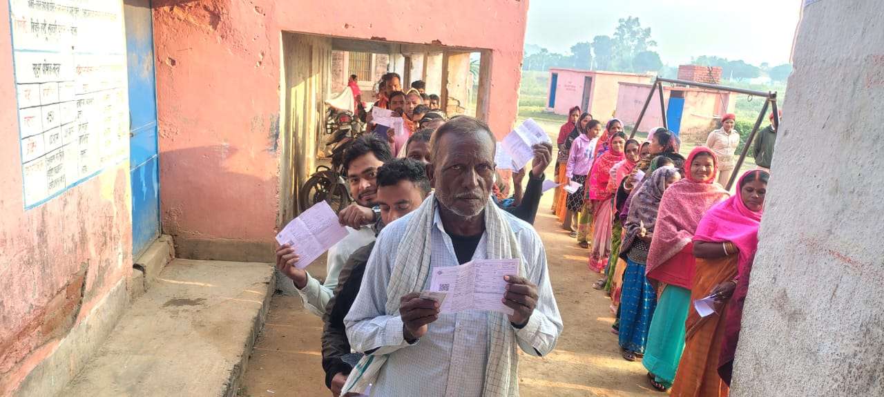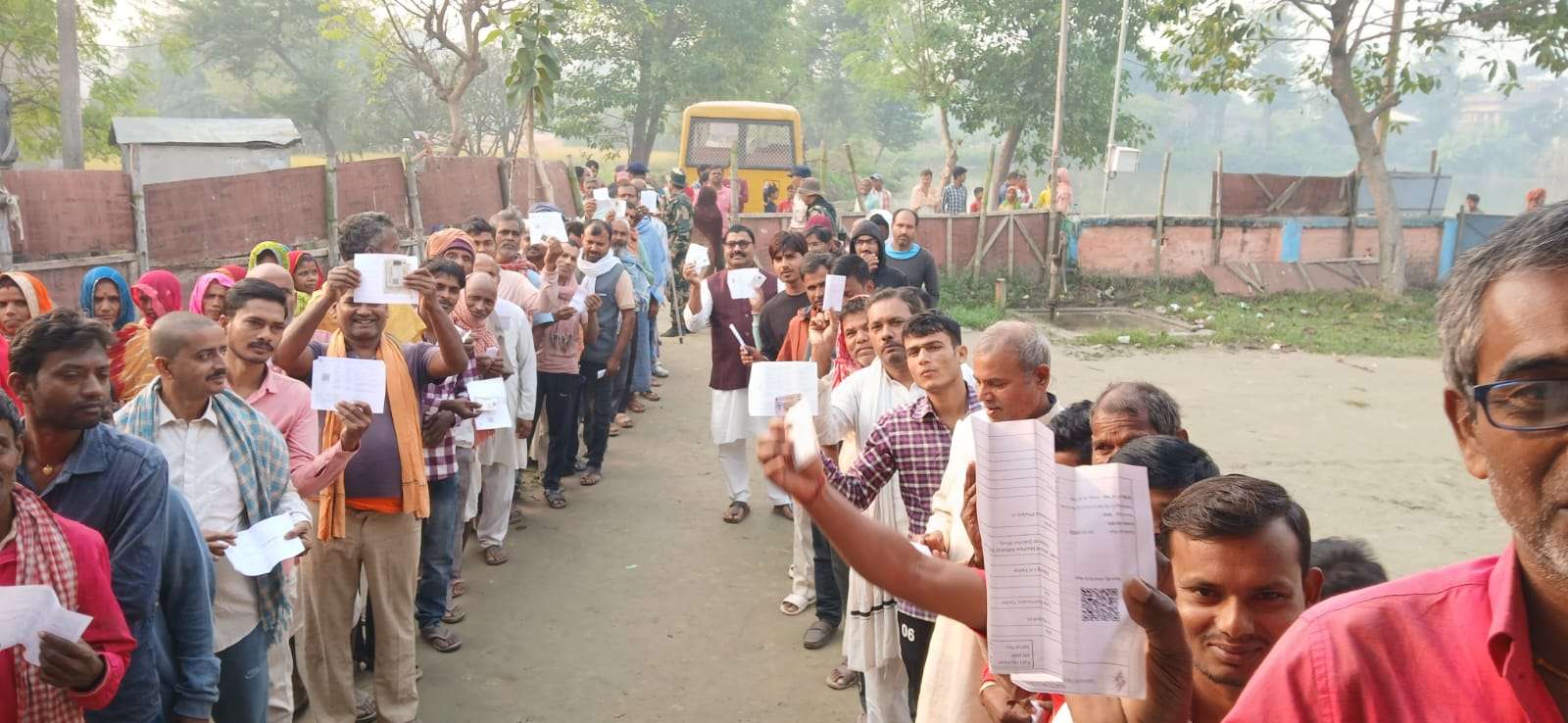इंडिया-नेपाल बॉर्डर से सटे वाल्मीकि नगर विधानसभा क्षेत्र के सभी बूथों पर मतदाताओं में जबरदस्त उत्साह देखा जा रहा है. सुबह से ही लोग मतदान केंद्रों पर पहुंचकर अपने मताधिकार का प्रयोग कर रहे हैं. युवा, महिलाएं और बुजुर्ग, सभी में वोटिंग को लेकर गज़ब का जोश नजर आ रहा है. पहली बार मतदान करने वाले युवाओं में खासा उत्साह और खुशी की लहर देखने को मिल रही है.