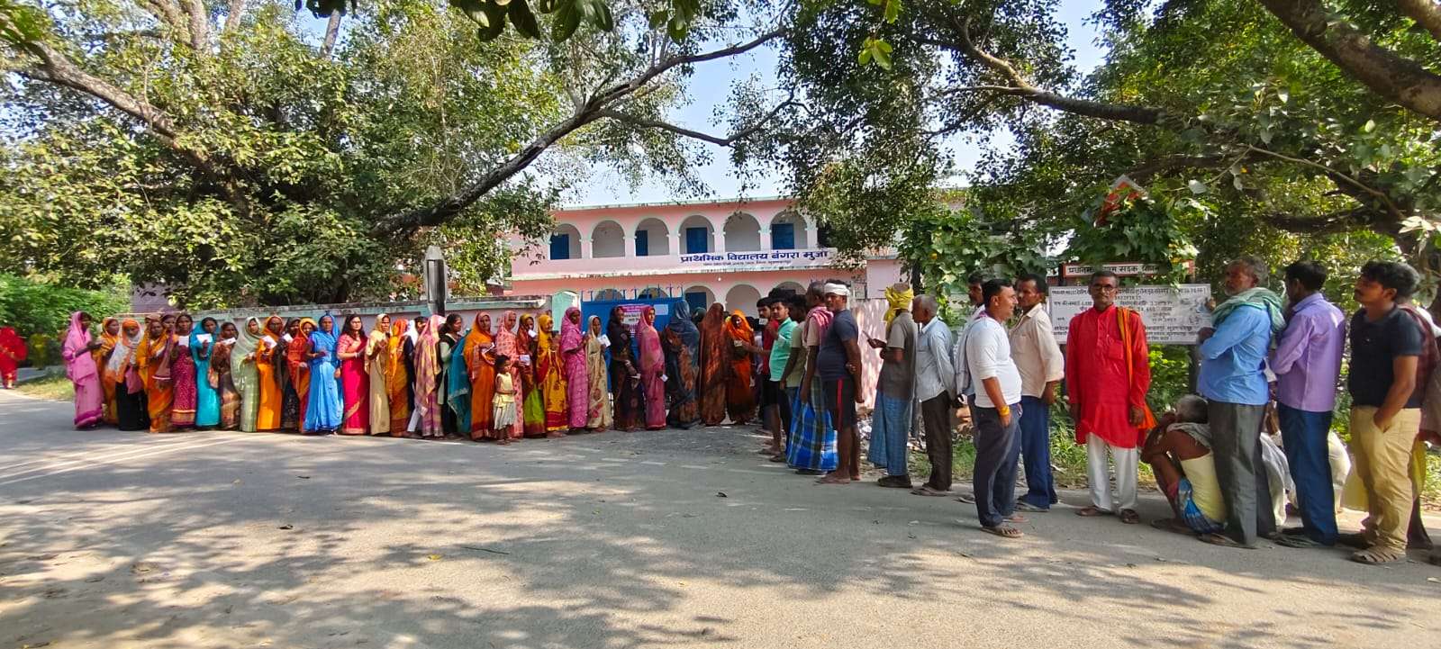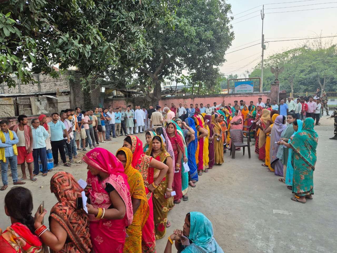 Bihar Chunav 2025 Voting Live : आदर्श मध्य विद्यालय सरैयागंज मुज़फ्फरपुर में वोटरों की कतार.