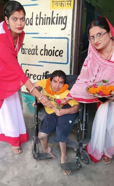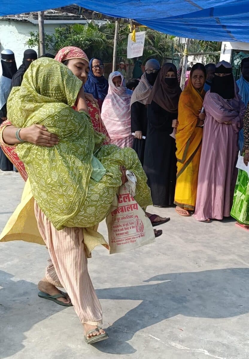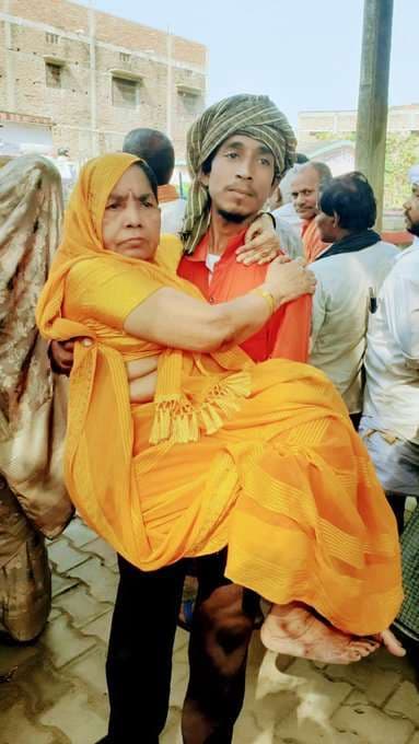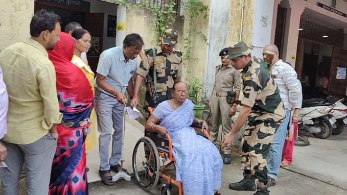 बेटे ने मां को गोद में उठाकर मतदान केंद्र पहुंचाया ताकि उनका वोट किसी भी हालत में छूट न जाए.