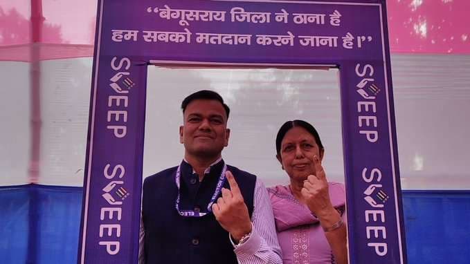 लोकतंत्र के महापर्व में बेगूसराय के डीएम तुषार सिंगला ने किया मतदान, .