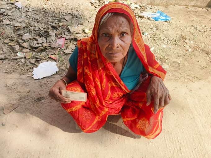 सरायरंजन विधानसभा के विद्यापतिनगर बढ़ौना पिंक बूथ पर वोट डाल कर सड़क पर अपनो का इंतजार करती 90 वर्षीया बतुलिया देवी.