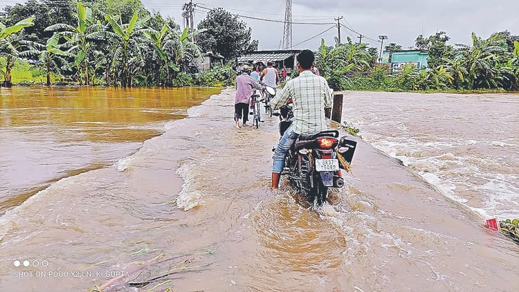 बलुआ बाज़ार. लगातार दो दिनों से हो रही भारी बारिश की वजह से लोगों का जनजीवन अस्त व्यस्त हो गया है. बारिश की वजह से आस-पास के नदियों में उफान आ गया है. नदी में उफान आने के कारण नदी का जलस्तर बढ़ने के कारण नदी का जल आस पास के खेतों में लगे किसानों के कई एकड़ में मूंग की फसल को भी प्रभावित किया है.