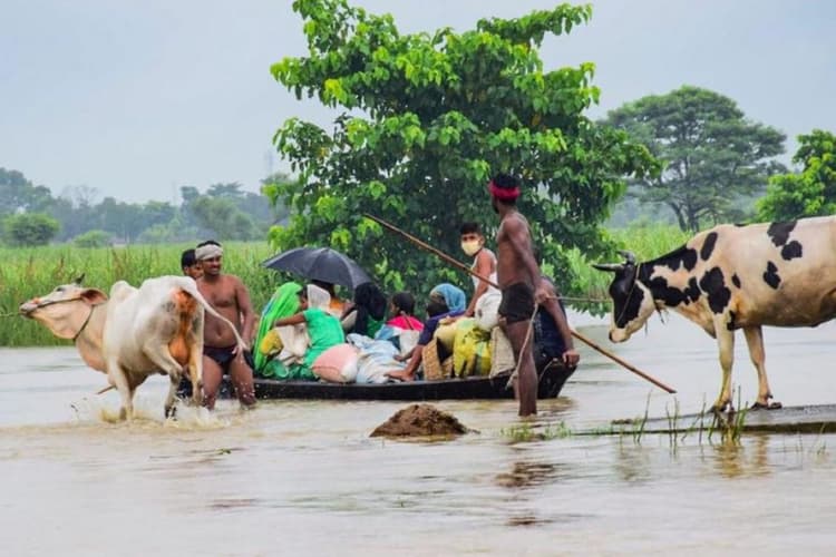 Bihar Flood: पटना. चार दिनों से हो रही बारिश के बाद पटना से सटे धनरुआ प्रखंड में पांच नदियां उफान पर है. इससे 16 सौ एकड़ में लगी धान की फसल को नुकसान हुआ है. वहीं चार पंचायतों के दो दर्जन से अधिक गांवों में पानी घुसने से लोगों का आवागमन अवरुद्ध हो गया है. फल्गु नदी में उफान आने से धनरुआ प्रखंड से होकर बहने वाली कररुआ, भूतही और महताइन नदी में शनिवार की रात बाढ़ आ गई. इससे अरमल से चकरमल के बीच में छह जगहों पर कररुआ और भुतही नदी का पानी दर्जनों गांवों में घुस गया है.