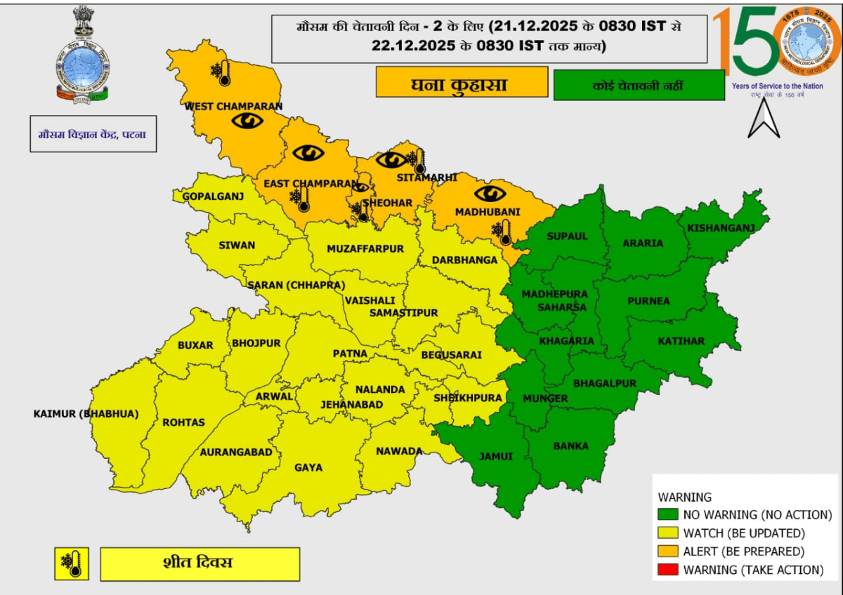 Bihar Ka Mausam: 25 दिसंबर के बाद कोल्ड डे की चेतावनी, मौसम विभाग ने जारी किया इन 26 जिलों के लिये अलर्ट