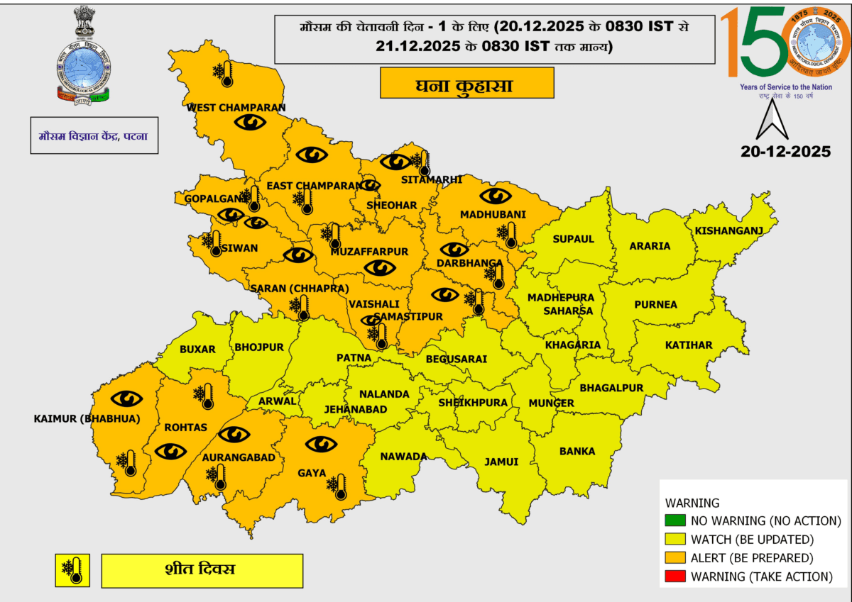 सावधान! बिहार के 15 जिलों में ऑरेंज और 23 जिलों में येलो अलर्ट, मौसम विभाग ने जारी की कोल्ड डे की चेतावनी