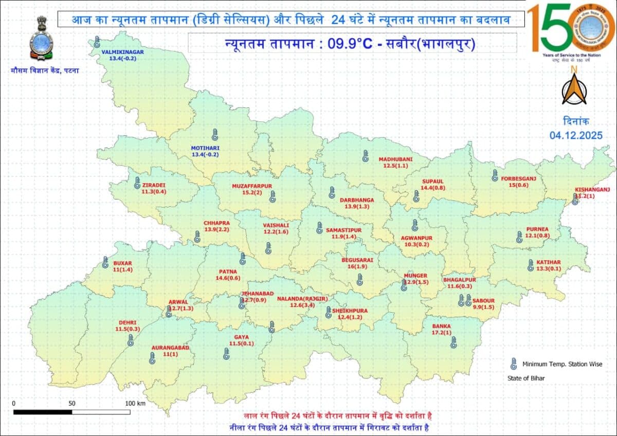 बिहार का सबौर रहा सबसे ठंडा, इन आठ जिलों में 10 डिग्री के करीब पहुंचा तापमान, अगले 48 घंटे के लिए IMD का अलर्ट