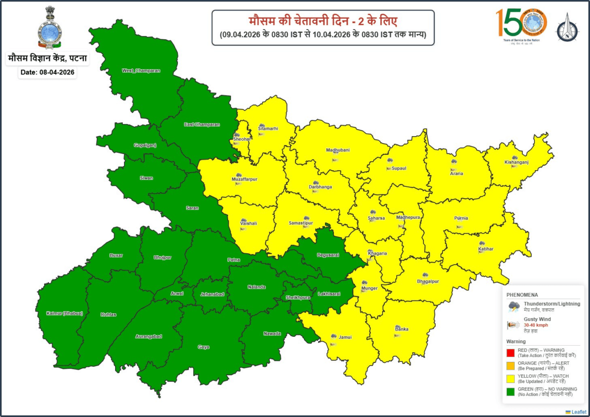 बिहार के 19 जिलों में IMD का येलो अलर्ट, तेज बारिश के साथ आंधी चलने की चेतावनी