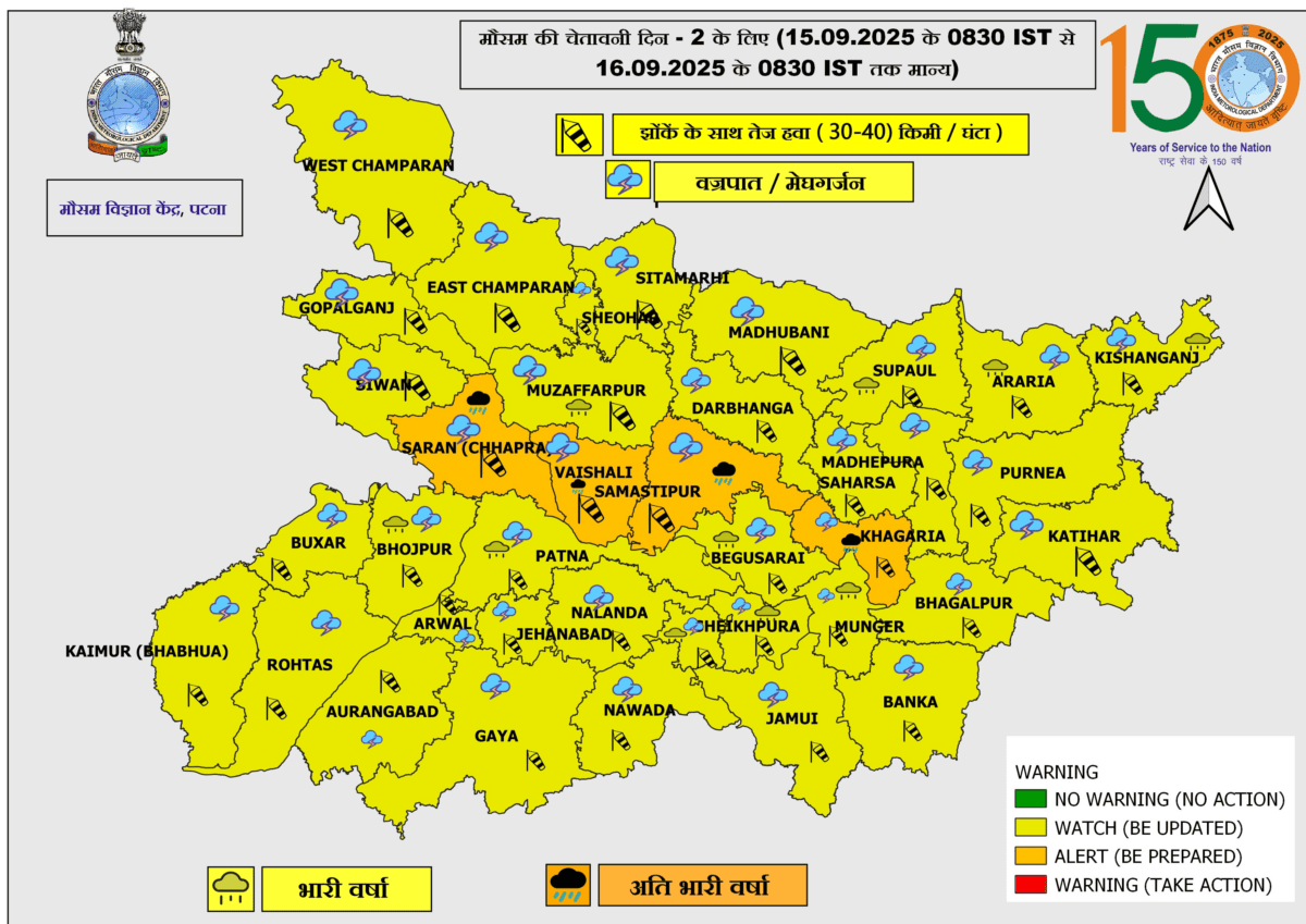 Bihar Mausam Samachar: बिहार के 4 जिलों में 15 और 16 सितंबर को होगी भारी बारिश, IMD ने जारी किया ऑरेंज और येलो अलर्ट