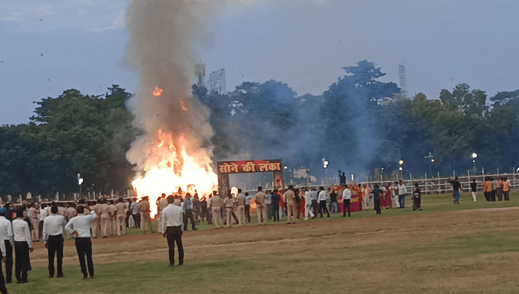 पटना के गांधी मैदान में लगातार 69वें वर्ष रावण दहन संपन्न हुआ. रावण के पुतला दहन के पहले मेघनाद और कुंभकरण की पुतले का दहन किया गया. इसके बाद रावण का दहन हुआ.