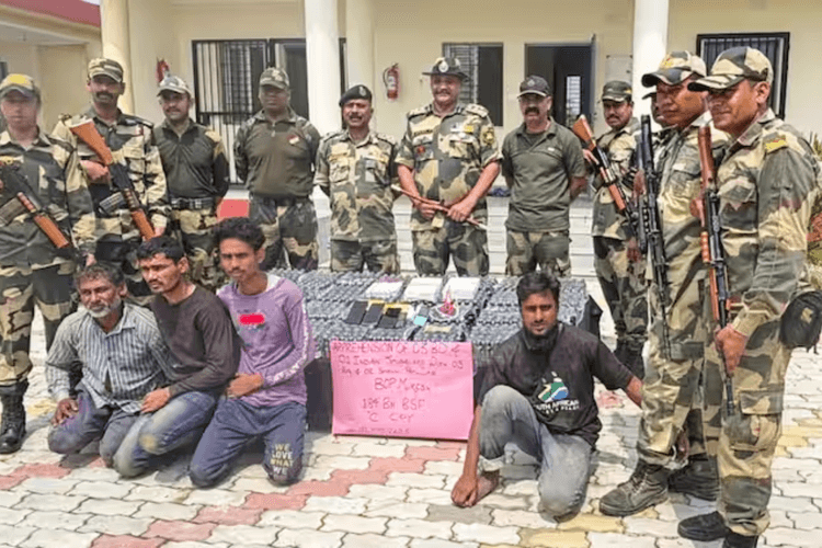 Bihar News: बिहार के किशनगंज जिले से एक बड़ी खबर सामने आई है. यहां बॉर्डर पर तैनात BSF ने चार बांग्लादेशी नागरिकों और एक भारतीय तस्कर को गिरफ्तार किया है. ये कार्रवाई भारत-बांग्लादेश सीमा के पास किशनगंज सेक्टर के जवानों ने उत्तर दिनाजपुर (पश्चिम बंगाल) के सीमावर्ती क्षेत्र में की. मौके पर संदिग्ध गतिविधियां देखी गईं. जांच में पता चला कि इन लोगों का संबंध अंतरराष्ट्रीय सीमा पार तस्करी से है. BSF की टीम ने जब इन्हें पकड़ा तो इनके पास से कुछ संदिग्ध सामान भी बरामद हुए. बताया जा रहा है कि ये लोग गैरकानूनी तरीके से सीमा पार करके भारत में दाखिल हुए थे. इनके साथ जो भारतीय नागरिक पकड़ा गया है, वो इन्हें यहां तक पहुंचाने में मदद कर रहा था.