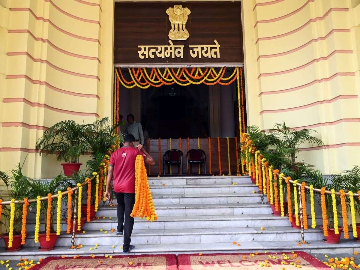 चुनाव के बाद पहली बार नए विधायक विधानसभा भवन पहुंचेंगे. उनके स्वागत के लिए परिसर को खास तरीके से सजाया गया है. भवन को ताजे फूलों से सजाया गया है, जबकि लॉन में मैक्सिकन घास बिछाई गई है. इसके लिए पुरानी मिट्टी हटाकर नई मिट्टी गंगा किनारे से मंगाई गई है.