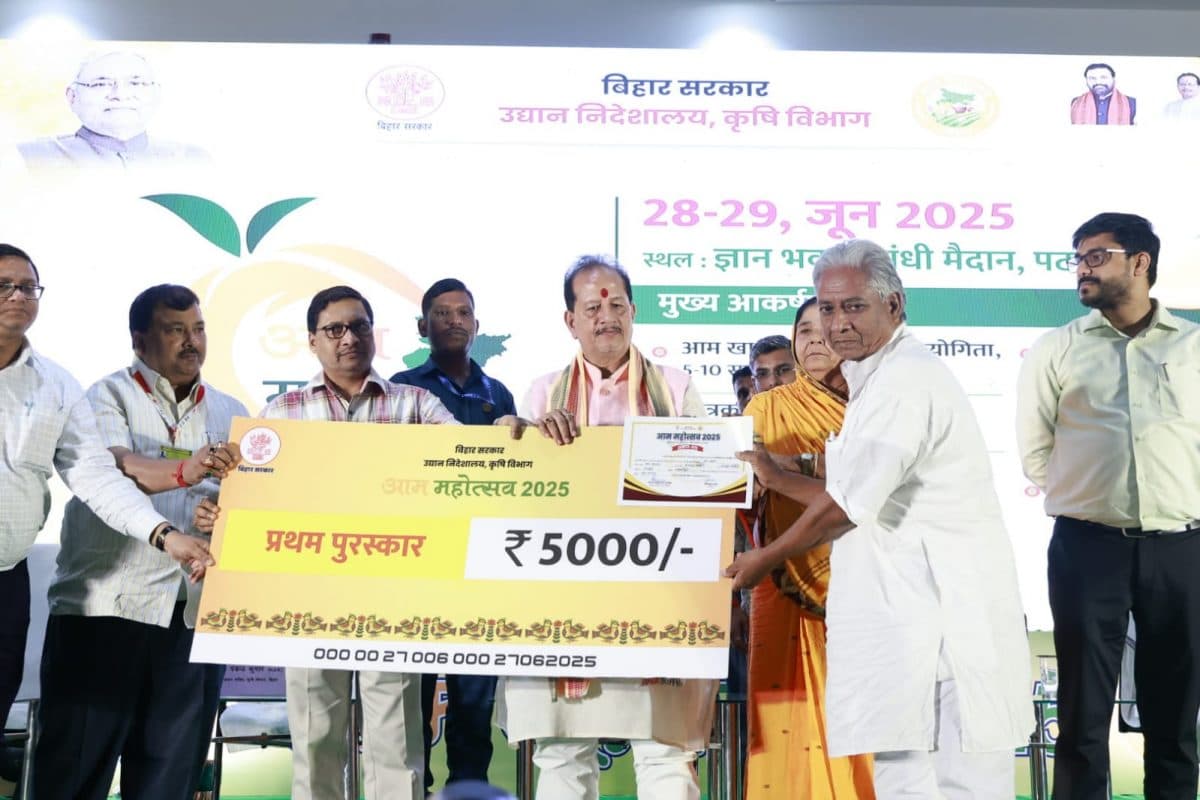 Bihar News: पटना के ज्ञान भवन में आयोजित दो दिवसीय आम महोत्सव में चयनित 31 प्रथम प्रदर्शों के बीच कुल 1.55 लाख, 26 द्वितीय प्रदर्शों में 1.04 लाख, 24 तृतीय प्रदर्शों के बीच कुल 72 हजार रुपये पुरस्कार के रूप में बांटे गये. प्रथम पुरस्कार के रूप में 5,000, द्वितीय 4,000 और तृतीय पुरस्कार तीन हजार रुपये दिये गये. कुल 3.31 लाख रुपये का पुरस्कार दिया गया. 806 आम उत्पादक कृषकों एवं उद्यमियों ने 5214 प्रदर्श लगाये थे. इस दौरान उपमुख्यमंत्री ने कहा कि किसानों को उद्यानिक कीट अनुदानित दर पर उपलब्ध कराये जायेंगे. इससे उत्पादन लागत में कमी आयेगी. आम उत्पादकों को पैकेजिंग पर अनुदान देकर उनके व्यवसाय को प्रोत्साहित किया जायेगा. उद्यानिकी फार्म में आकर्षक वाटिकाओं का निर्माण कर बच्चों को प्रकृति से जोड़ा जायेगा.