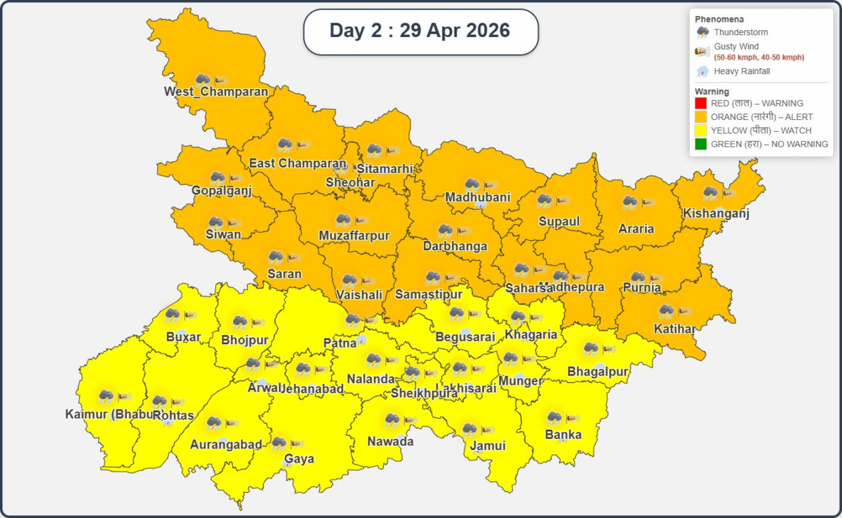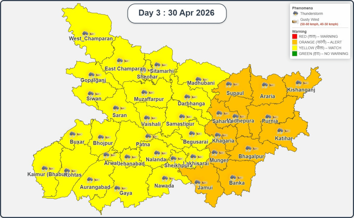 29 और 30 अप्रैल को पूरे बिहार में IMD का अलर्ट, गरज-चमक के साथ तेज आंधी-बारिश की चेतावनी