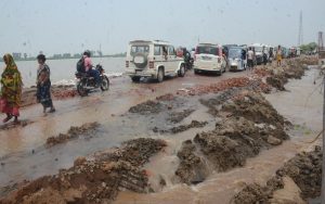 गंगा हाथीदह में शनिवार को खतरे के निशान से 47 सेमी ऊपर बह रही थी. मुंगेर पहुंचते ही गंगा का जलस्तर खतरे के निशान से 64 सेमी ऊपर पहुंच गया था. भागलपुर में भी गंगा लाल निशान से ऊपर बह रही है जबकि कहलगांव में गंगा का जलस्तर लाल निशान से 97 सेमी ऊपर था. भागलपुर-कहलगांव NH-80 पर पानी चढ़ चुका है. खानकित्ता के आगे पानी सड़क के आर-पार बहने लगा है.