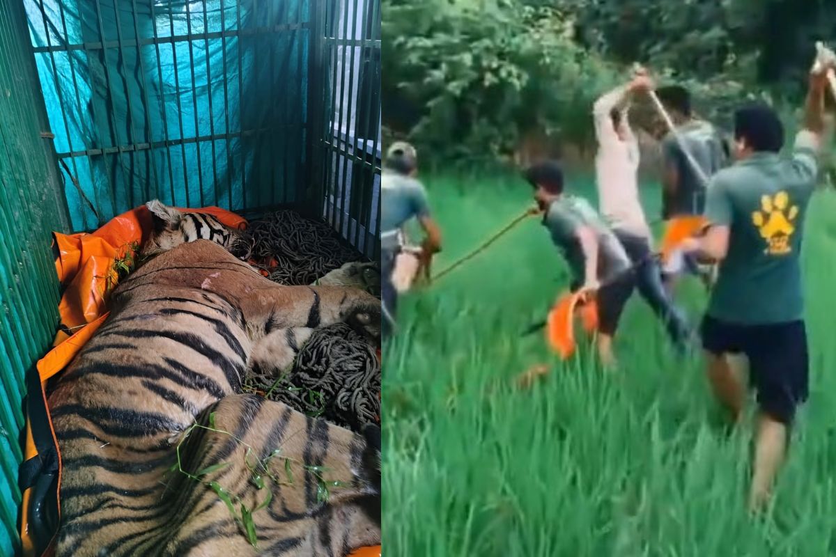 वायरल वीडियो बिहार के पश्चिम चंपारण का बताया जा रहा है. जहाँ बाघ ने एक किसान को मार डाला. वनकर्मी पर हमला बोला तो ग्रामीण बाघ पर टूट पड़े. pic.twitter.com/4UXYQoHp11