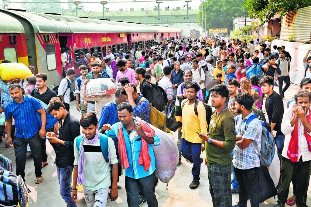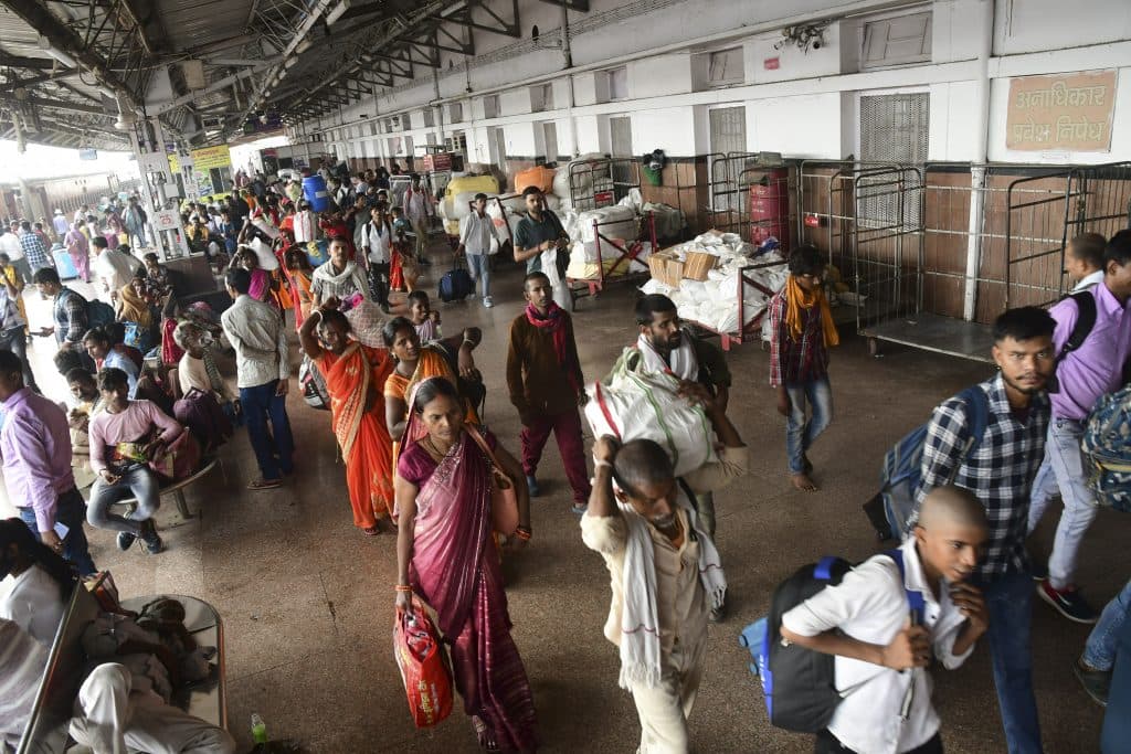 दिल्ली, मुंबई, सूरत जैसे शहरों से बड़ी संख्या में बिहारवासी अपने घर पहुंच रहे हैं. पटना जंक्शन का लगभग हर प्लेटफॉर्म यात्रियों से पैक दिखता है. शनिवार को मुंबई से आ रही गोरखपुर एक्सप्रेस में लोग ट्रेन के दरवाजे पर खड़े होकर पटना पहुंचे. यह ट्रेन जब खुली तो एक नंबर प्लेटफॉर्म पर ही 1.18 बजे मगध एक्सप्रेस पहुंची. इस ट्रेन में भी भीड़ भरी हुई थी लोग आपातकालीन खिड़की से सामान उतारते दिखे. जिन लोगों ने पहले से ही रिजर्वेशन करा लिया था उन्हें भी परेशानियों का सामना करना पड़ा.