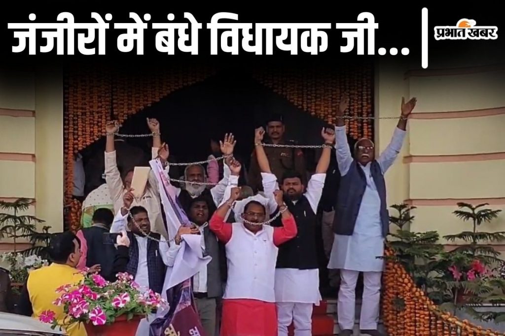 विधानसभा के अंदर सेंट्रल हाल में भी जंजीर पहनकर पहुंचे विधायक
